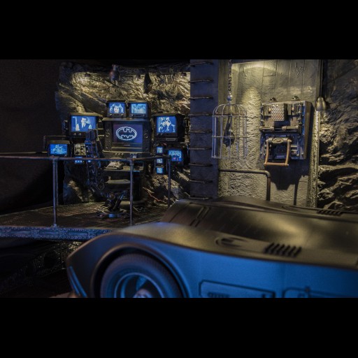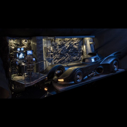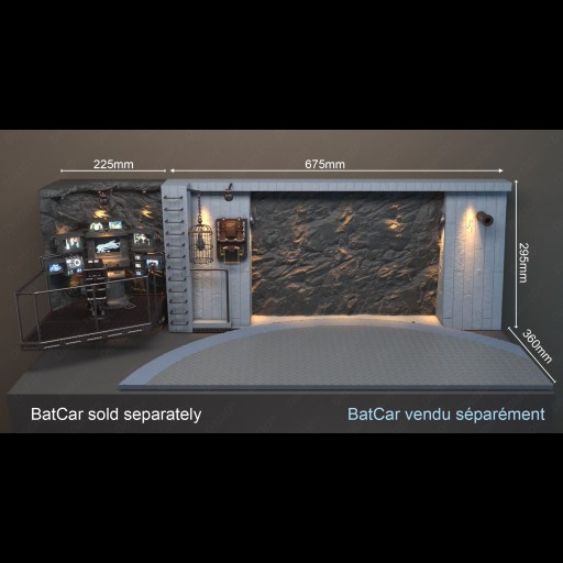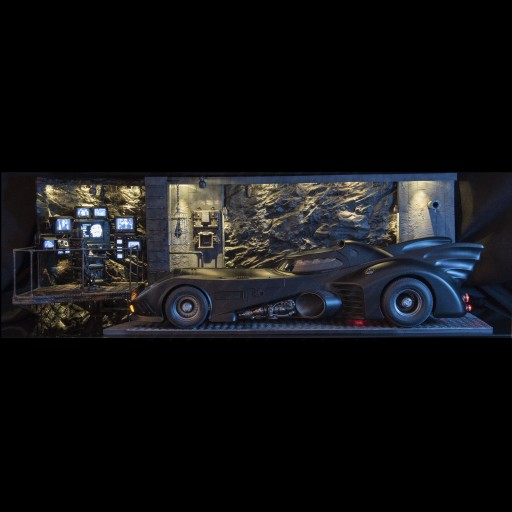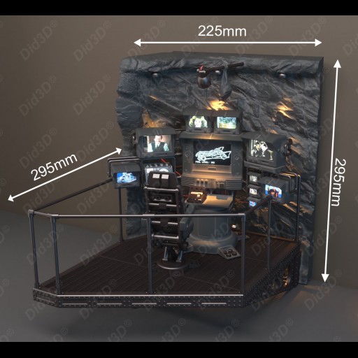 Diorama compatible with the Did3d BatCar (660mm)(no included), decor reproducing the Batcave from the 1989 film, computer desk with a real 128x64 pixel OLED screen, powered by Arduino code, with multiple sequences related to the BatCar and the 3D animated film, text, images. The other screens are sticker images (provided) for maximum effect.