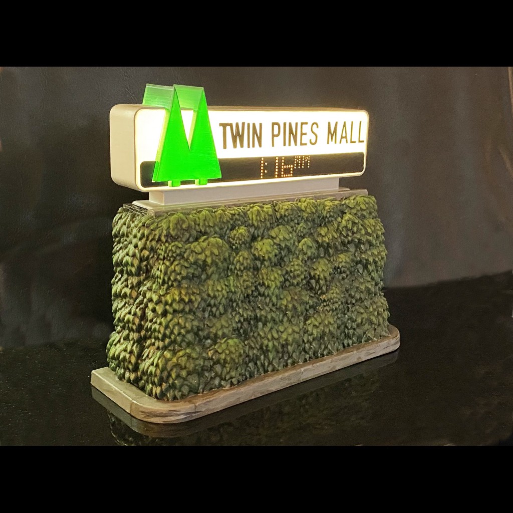 This is The Sign of the Parking TWIN PINES MALL . the exact Replica of the movie Scene. All STL and Building instruction is included, no pieces need Supports. I advise Use Paint: Ref: X25 clear green and X26 clear Orange ,the face piece must be print with Withe Filament exclusivly.